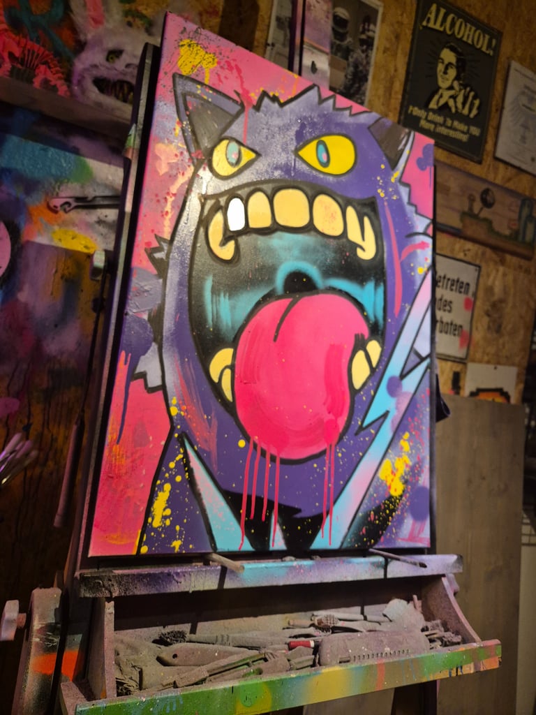 Jedes Stück ist ein echtes Original – handgesprüht, handsigniert, ein Unikat mit Seele. Kein Druck, keine Reproduktion, kein zweites Mal genauso. Wenn du ein Werk kaufst, bekommst du ein Stück unserer Welt – direkt aus dem Atelier zu dir.